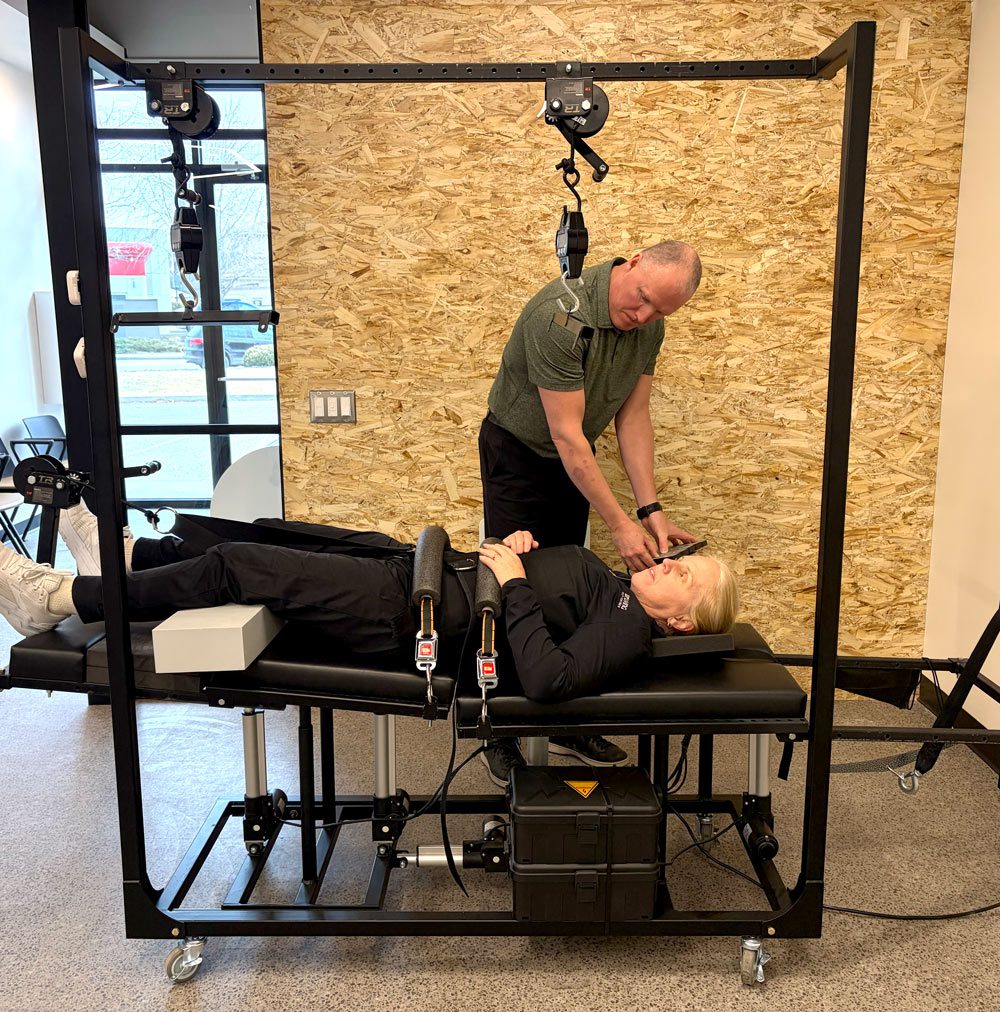When it comes to long-term spinal correction, simple adjustments are not always enough. That’s why at 100+ Living Health Centre we use In-Office Three-Dimensional Traction — advanced equipment designed to gently remodel the spine toward its ideal alignment.